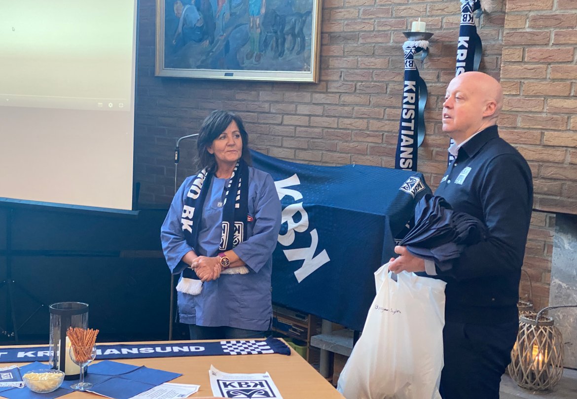 Anny Bjerkestand har et stort hjerte for KBK og gledet seg over å treffe Kjetil Thorsen på fotballpuben på Bergan.