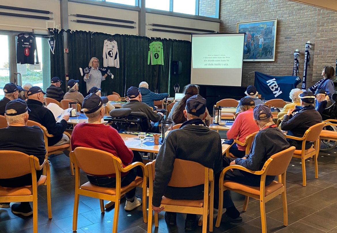 Hver uke møtes beboere, pårørende og ansatte på Bergan sykehjem og omsorgsboliger til aktiviteter og hyggelig samvær. Denne uka var det fotballpub med KBK i fokus og god stemning.