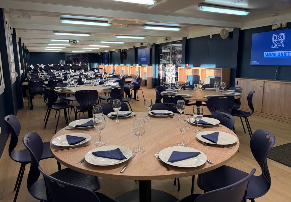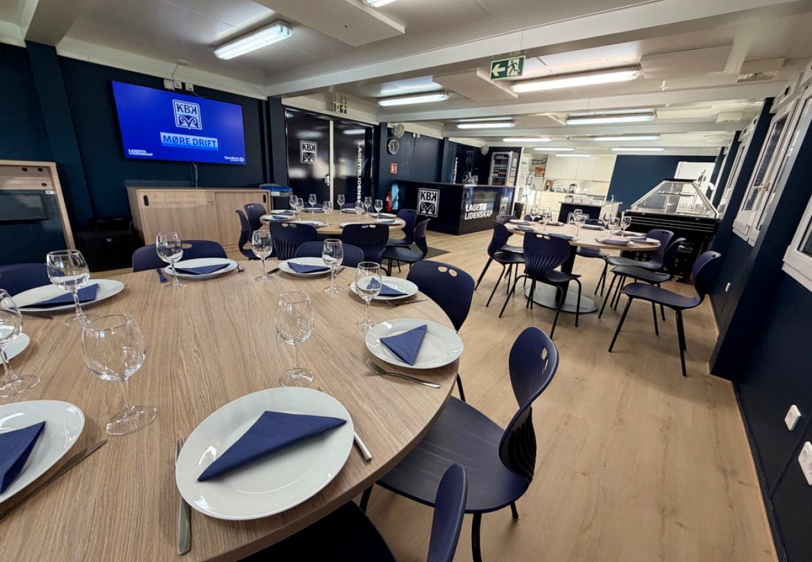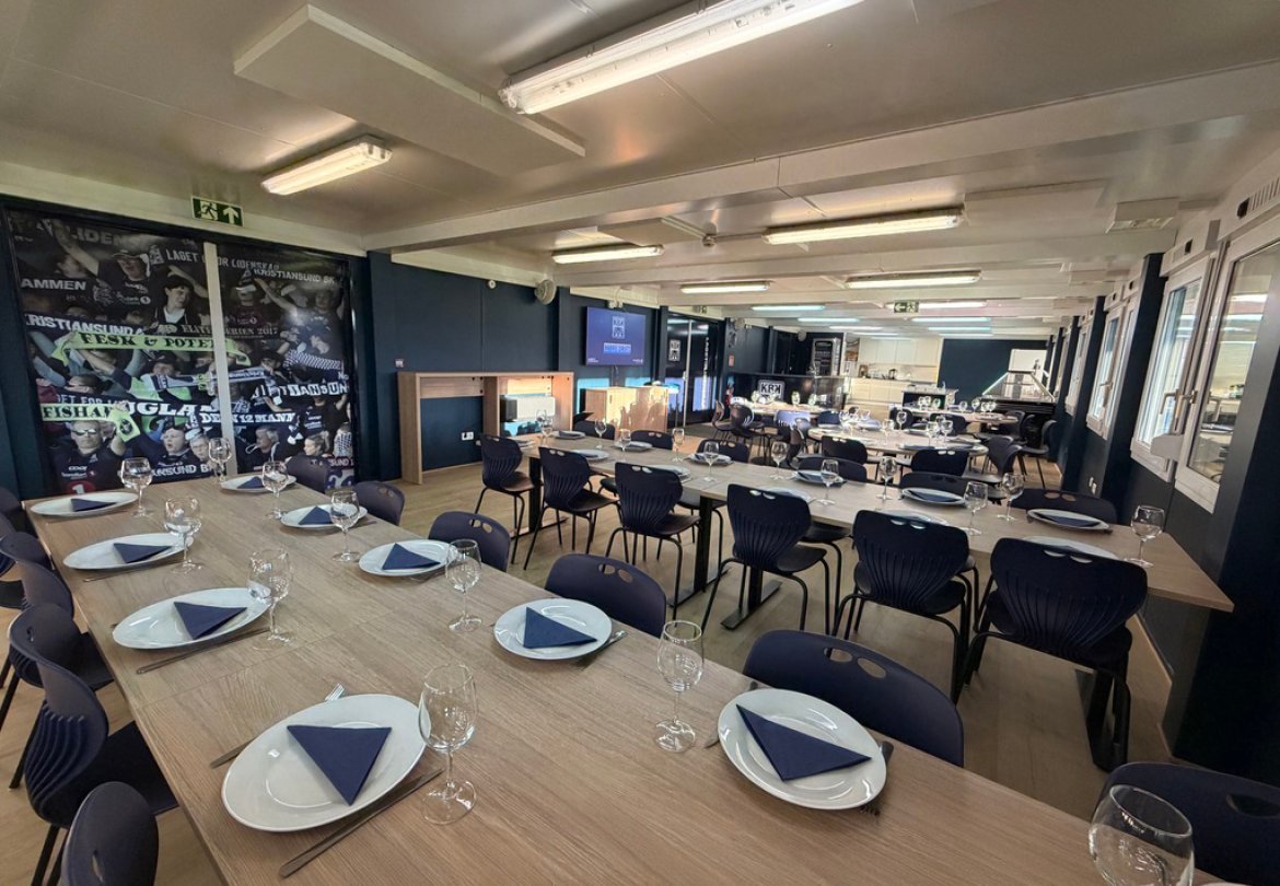 Alt sto klart til KBK-spillerne møttes til første fellestrening 12. januar. De samles i Møre Drift VIP hver dag til felles frokost og lunsj. I hverdagen brukes lokalet også til lunsj for øvrige ansatte i klubben.