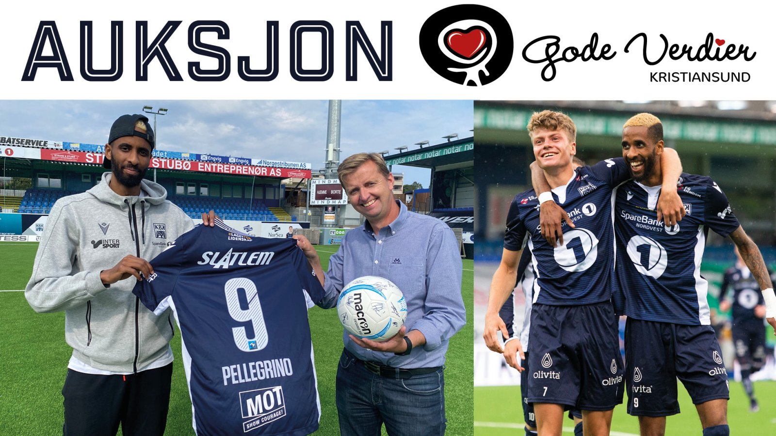 Pellegrino ønsker å auksjonere sin signerte hjemmekampdrakt sammen en med en Macron-ball som er signert av hele laget. Pengene vil i sin helhet gå til foreningen Gode Verdier Kristiansund.