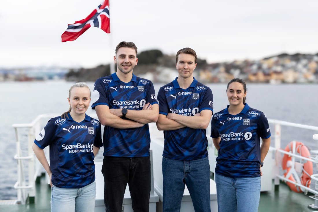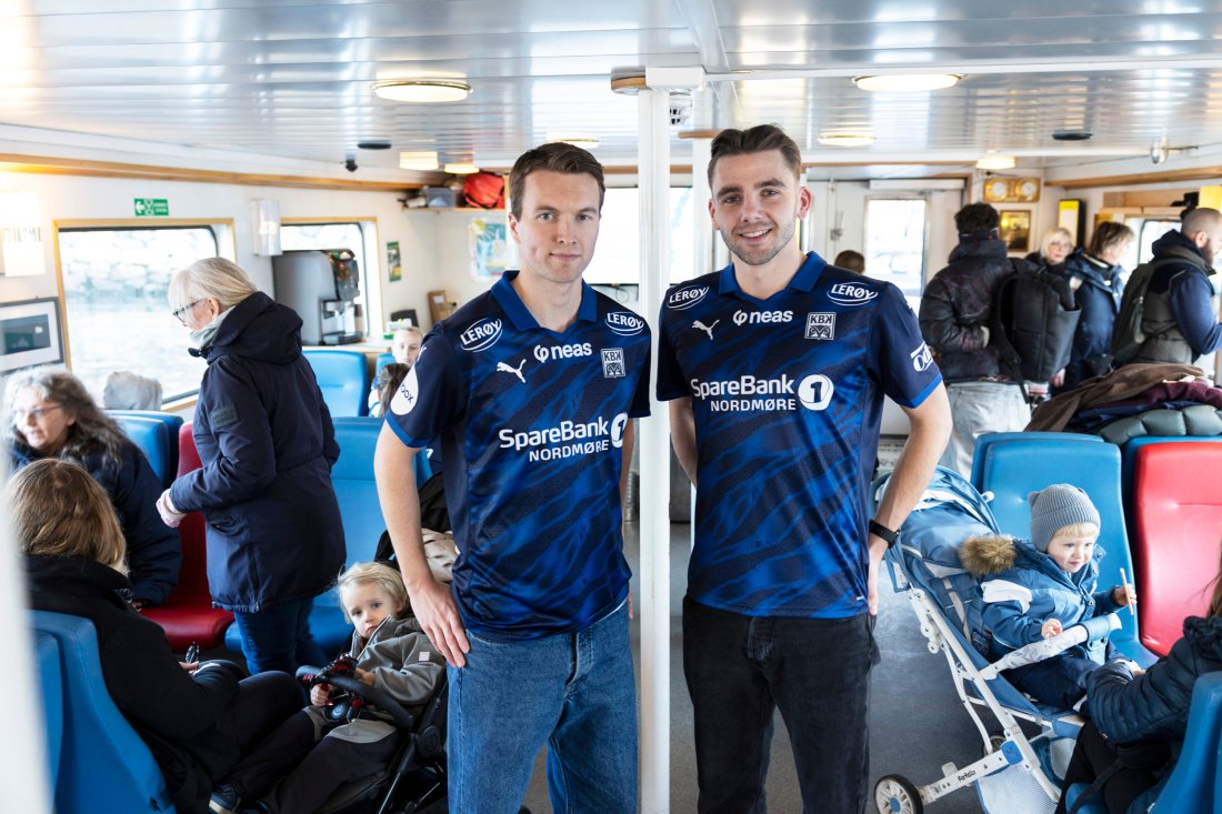 KBK-spillerne Jesper Strand Isaksen, Niklas Ødegård, Anna Strømsvåg og Julie Belden Rasmussen ble de første som fikk ta på seg den nye hjemmedrakta. På Sundbåten møtte de mange reisende som fikk en sniktitt på trøya KBK skal bruke i Eliteserien og fylkesserien i år.