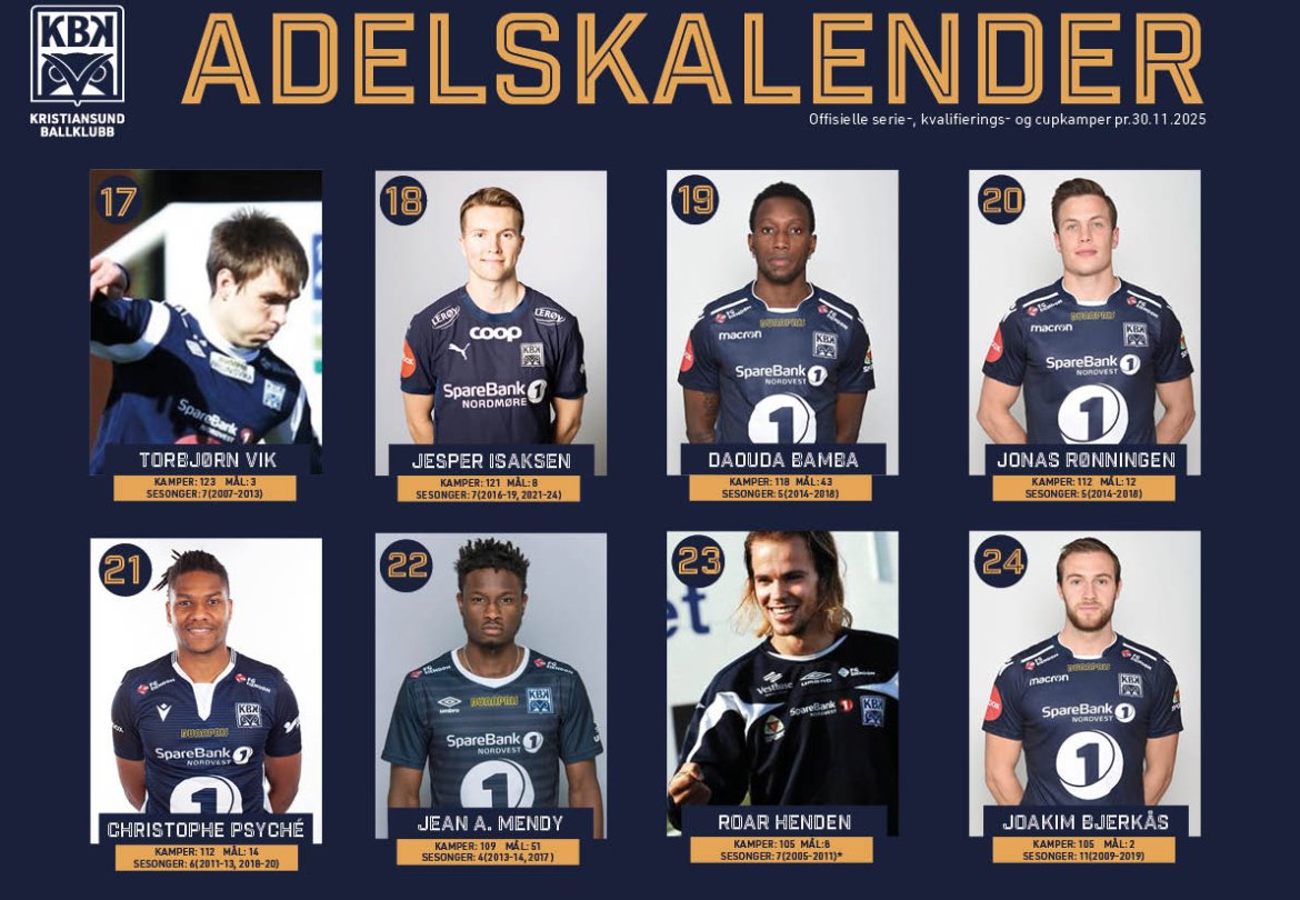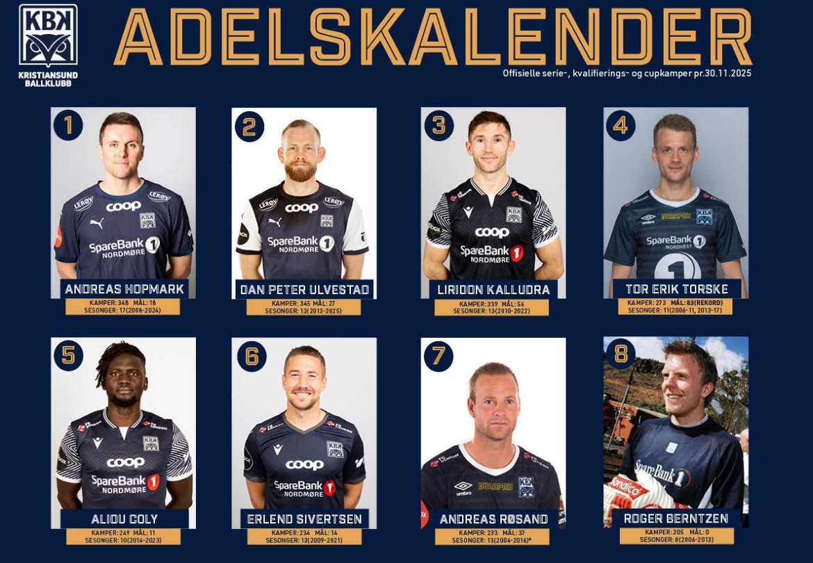 Bildeserien over viser alle spillere med over 100 kamper for Kristiansund Ballklubb (pr. 09.12.2025). Nederst i saken ser du listen over alle med kamper for KBK!