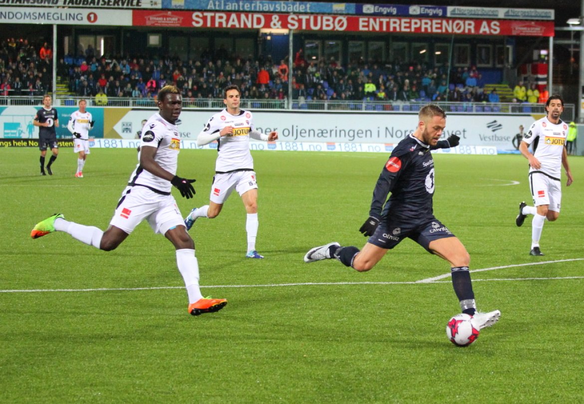 Etter 36 minutter viser derimot Sandefjord at de kan om de vil. Spiller seg flott fri på høyrekanten - Bindia slår et flott innlegg mot Kastrati som på vakkert vis stiger til værs og header inn reduseringen via stolpen og inn. 2-1!