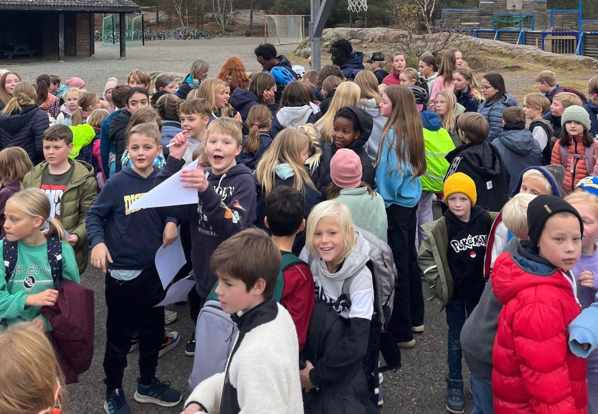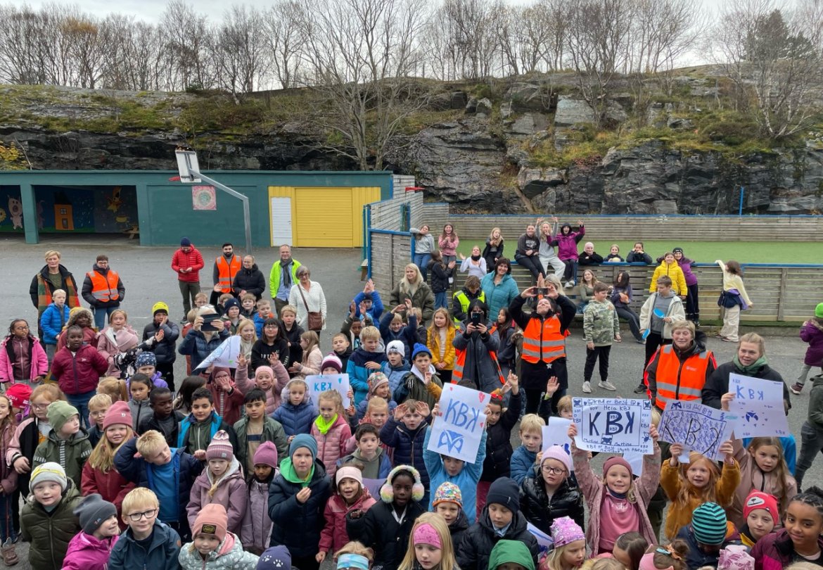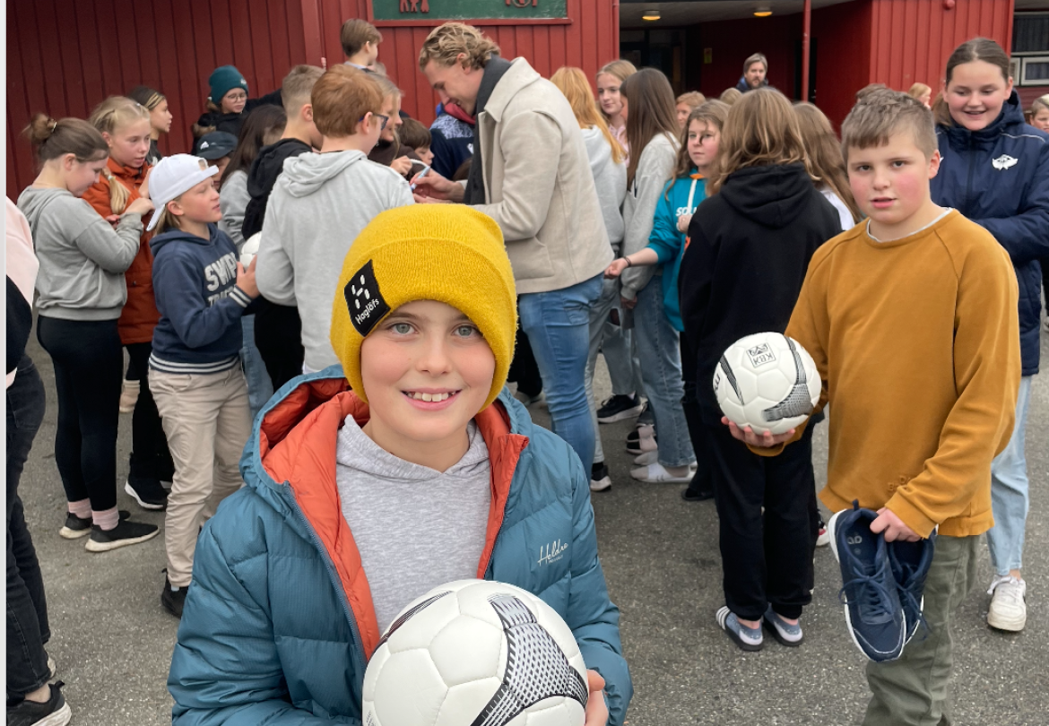Det ble full jubel og stjerner i øynene da KBK dukket opp i skolegården for å dele ut en gave til alle klassene og SFO i Kristiansund kommune, nemlig en klasseball gitt i gave fra KBK og Neas.