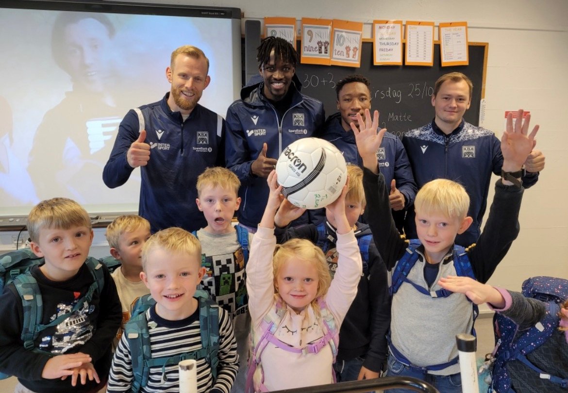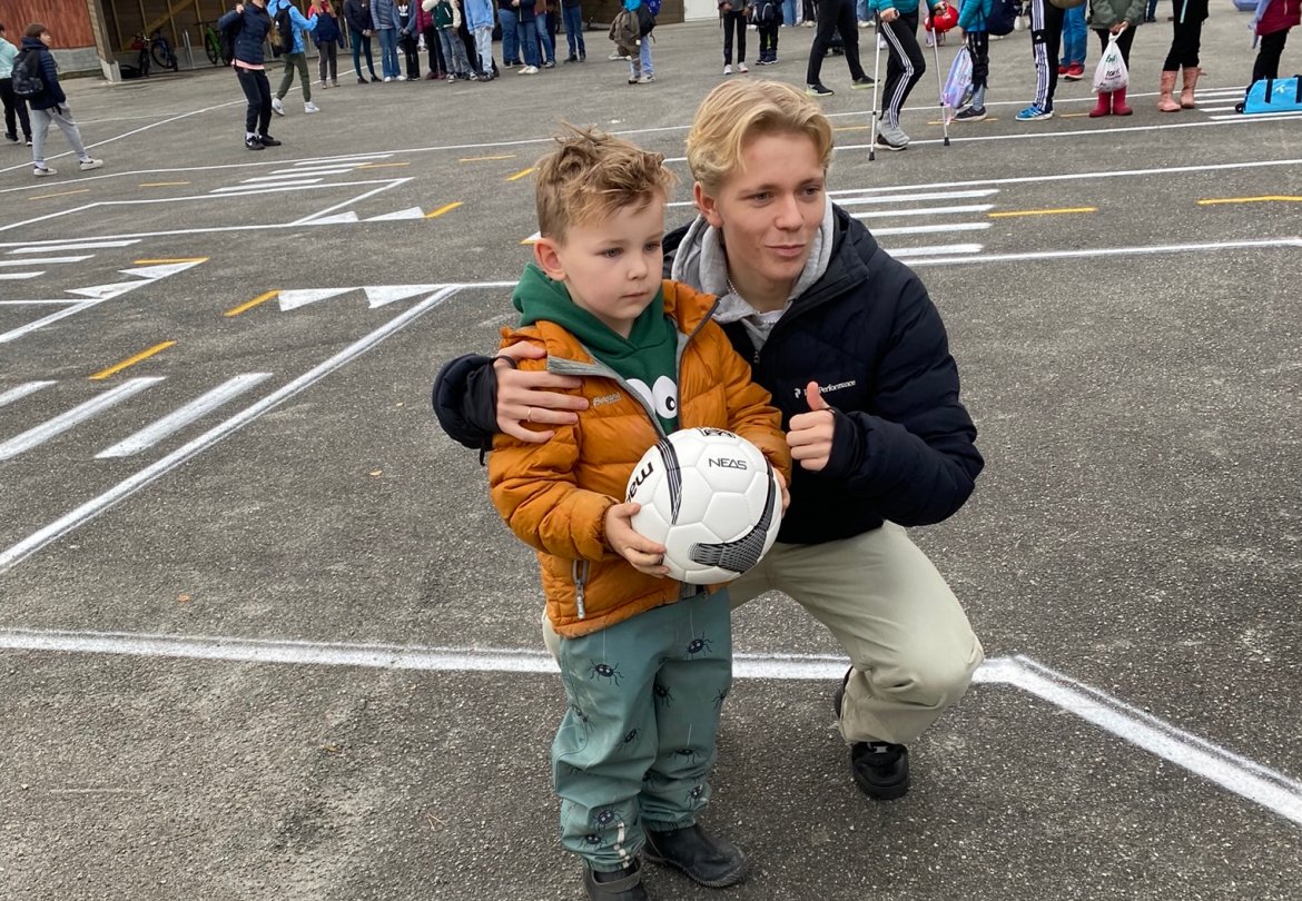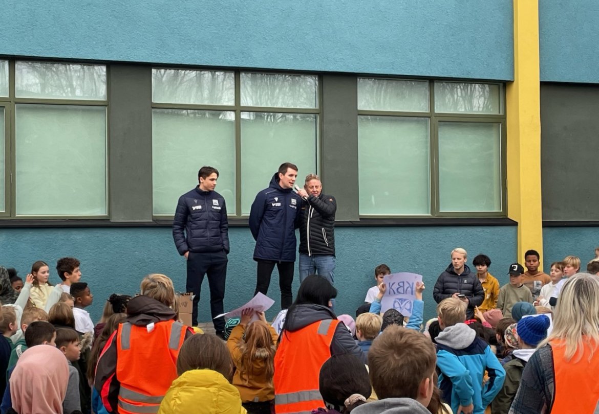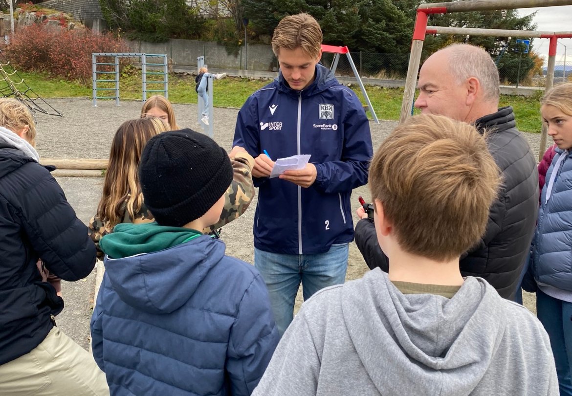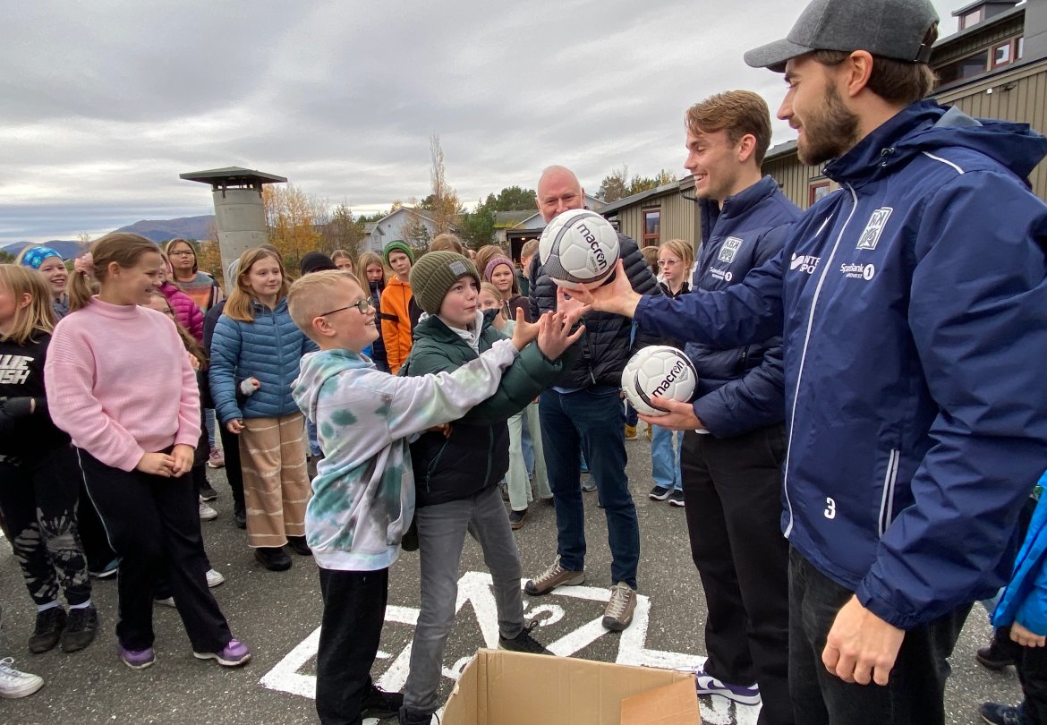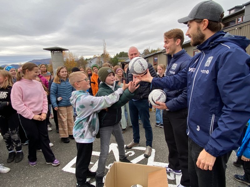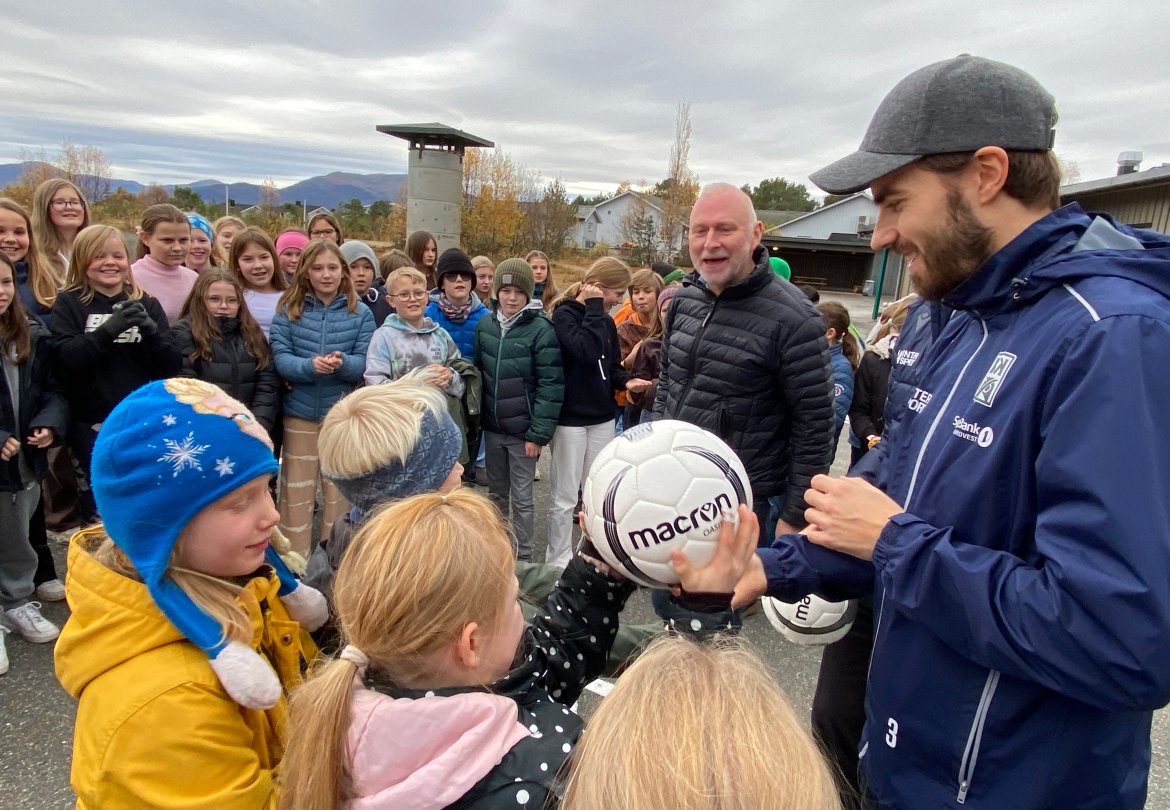 - Vi setter enormt stor pris all den støtten dere har gitt oss, derfor fortjener dere en gave tilbake fra oss i KBK og vår gode samarbeidspartner Neas. Vi håper dere vil få mye glede av klasseballene. Dessuten håper vi dere alle kommer og støtter oss de siste viktige kampene på Kristiansund stadion, sier Christoffer Aasbak og Bendik Brevik til elevene på Frei skole.
