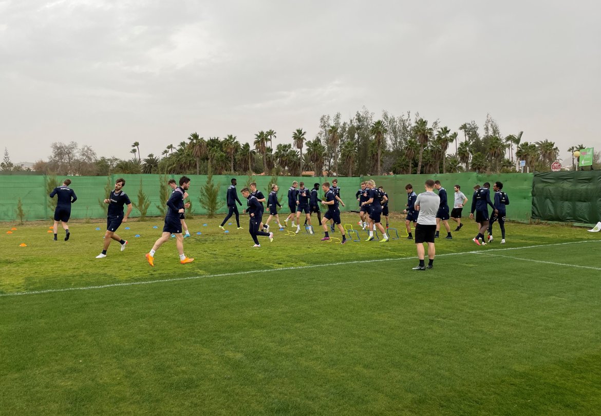 Treningsforholdene er upåklagelige. Nesten hele stallen er med, 25 spillere, trenere og en fin gjeng fra støtteapparatet. Hele gjengen er klare for 10 dager med harde og gode trenings-økter. Tid til avslapping, kos og team-building blir det nok også.