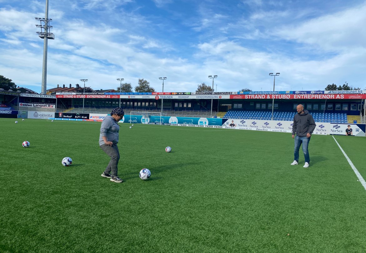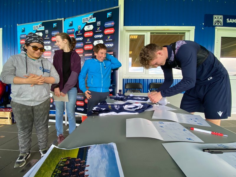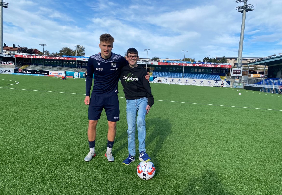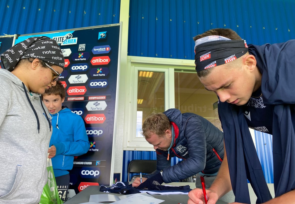 Etter treninga slo spillerne av en prat med gjestene fra Nordlandet ungdomsskole, og det ble både tid til signaturer på bilder, trøyer og keeperhansker i gave.
