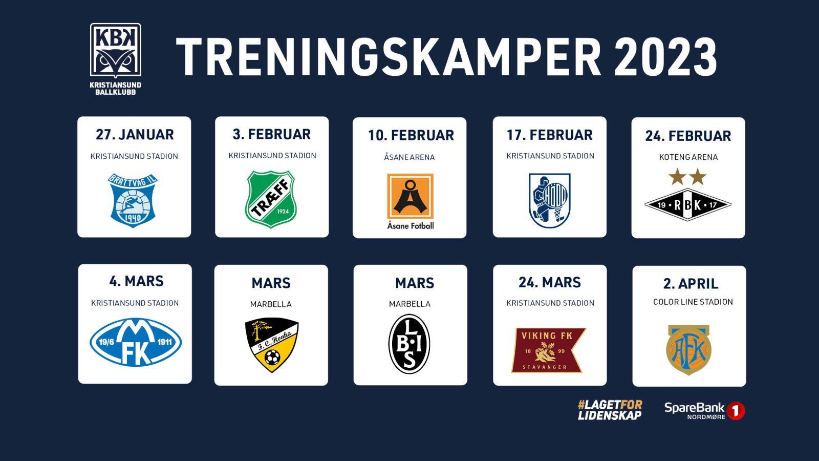 Generalprøven spilles i Ålesund mot AaFK søndag 2. april. Vi ønsker oss gjerne mange fra Kristiansund som tar turen til Jugendbyen palmesøndag.
