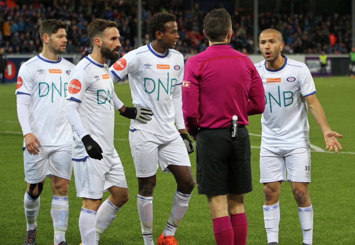 Stokke velger å ta straffen selv, men sklir i det han tar straffesparket. Ballen går i mål, og hele Kristiansund stadion jubler for scoring - dommeren vil det derimot annerledes.