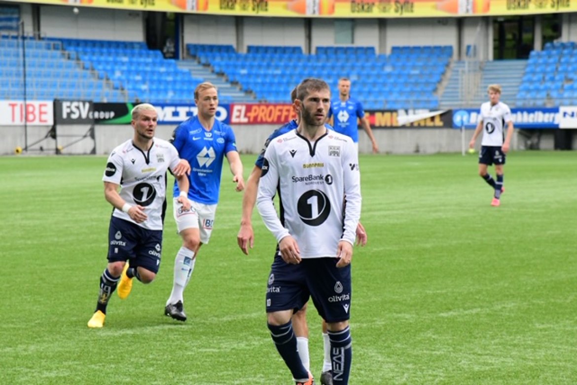 Begge lag nærmer seg muligheter, men ballen går over og ved siden av mål. Flere gode avklaringer i feltet av forsvar og keeper McDermott. Sondre Sørli byttes ut etter 30 minutter på grunn av ball i ansiktet rett etter kampstart. Inn kommer Bendik Bye. I 44. minutt skyter Bendik Bye direkte i mål etter pasning fra Flamur Kastrati.