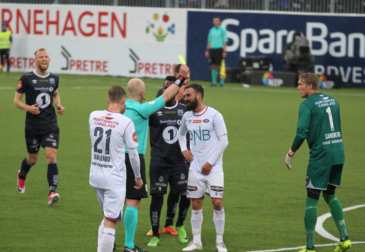 KBK kjemper seg kjapt inn i kampen, og er hissige på kontringer mot et Vålerenga-lag som står offensivt og høyt i banen. Etter en drøy halvtime utnytter KBK dette, og det blir høylytt på Kristiansund stadion. KBK kontrer og Rønningen jager et langt oppspill. Eliteseriens kjekkeste kommer først på ballen, og blir tatt av keeper Marcus Sandberg rett utenfor 16-meteren som bakerste mann. Hele stadion roper på rødt kort, men dommer Dag Vidar Hafsås lander på frispark og gult kort. En god avgjørelse sett i ettertid.