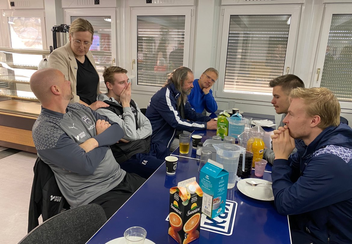 Klaveness sitt klubbesøk startet med frokost sammen med spillere, trenere og støtteapparat i KBK Gatelag i Møre Drift VIP. Det ble glade og varme samtaler med fotballens store og høyt respekterte leder.