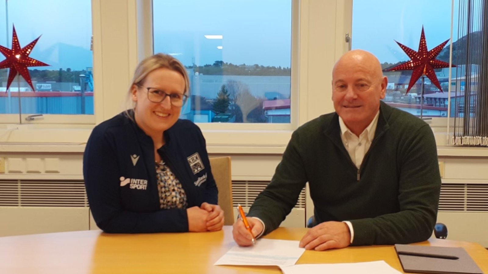 Markedsleder Liv Berit Bach i KBK, er strålende fornøyd når daglig leder i West Elektro Stein Hendnes signerer ny avtale.