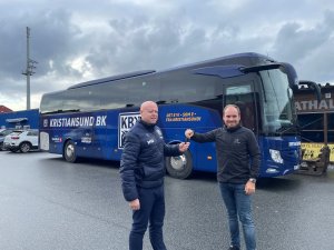 I dag var det en hyggelig dag på Kristiansund Stadion da vår hovedsponsor Slatlem & CO AS leverte buss til KBK.